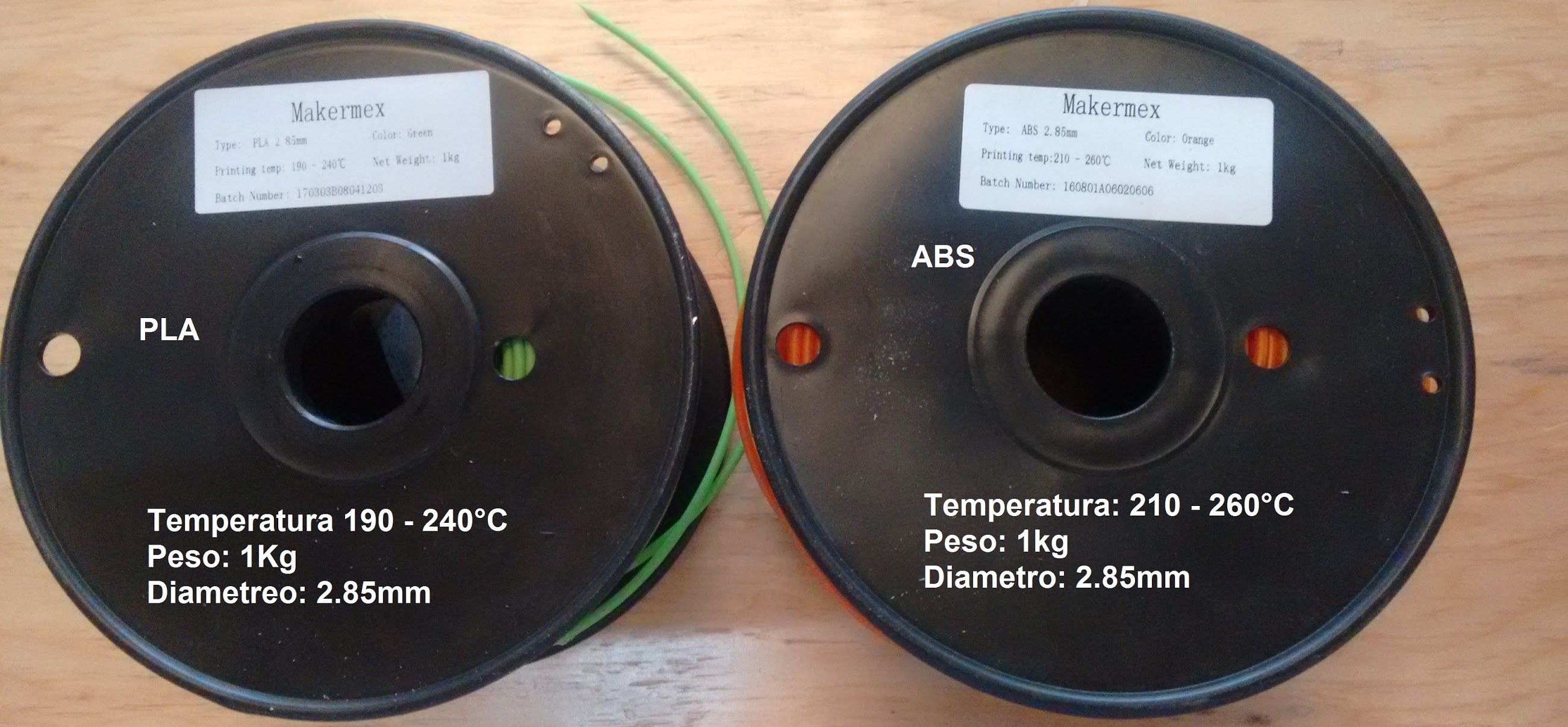 Es importante saber que también existen diferentes diámetros en los filamentos se pueden encontrar filamentos con diámetros de 1.75 mm y 2.85 mm.