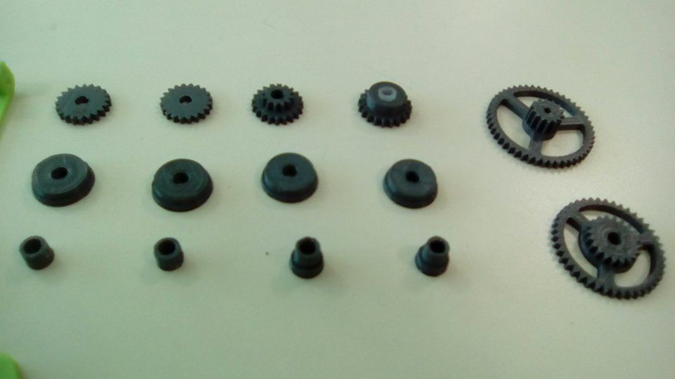 Junta la estructura posterior con el resto de la base y coloca el engrane al eje del motor.