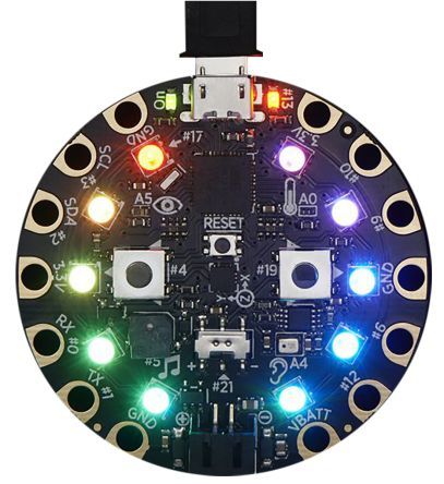 Circuit Playground es una tarjeta programable, compacta y eficiente, capaz de realizar los proyectos que necesitas. (es recomendable tener una idea de cómo se utiliza Arduino, ya que tienen varias características similares)